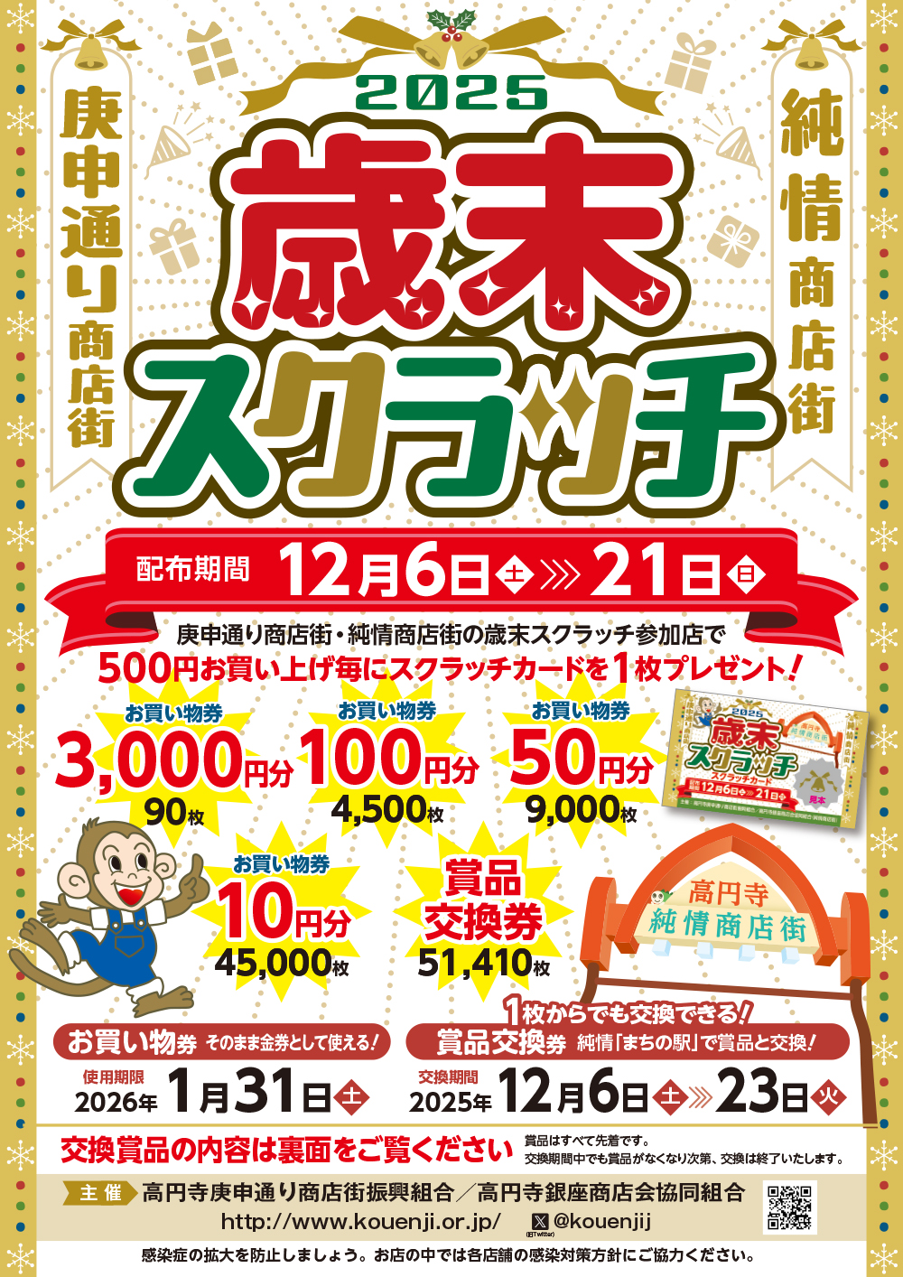 庚申通り商店街・純情商店街の歳末スクラッチ参加店で 500円お買い上げ毎にスクラッチカードを1枚プレゼント! スクラッチカードの配布期間は15日間! 【開...more