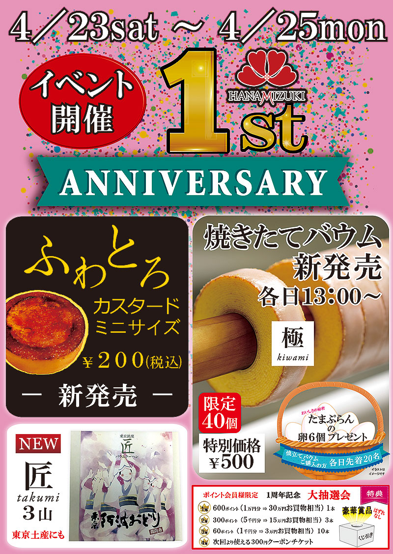 バウムクーヘン工房HANAMIZUKI高円寺が1周年記念イベント♪